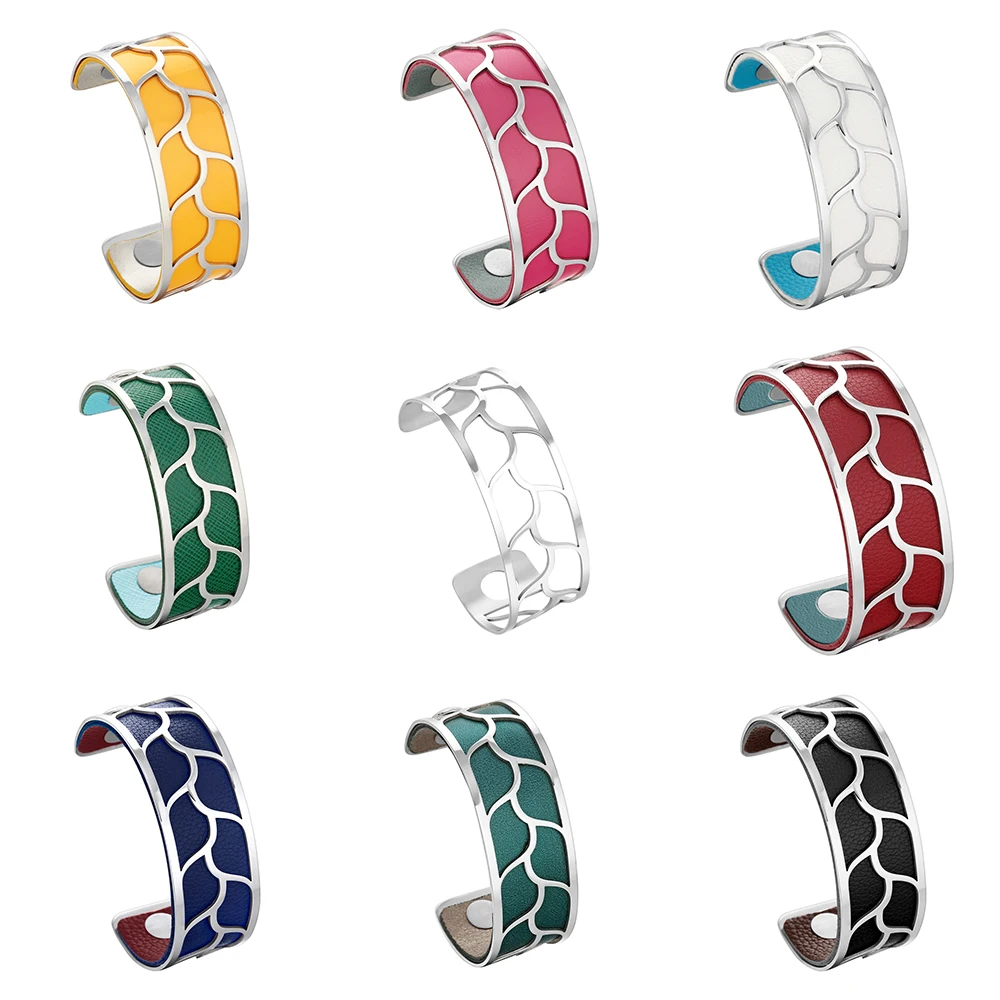 legenstar bracelet en acier inoxydable pour femme manchette bijoux feuille reversible en cuir a faire soi meme aliexpress