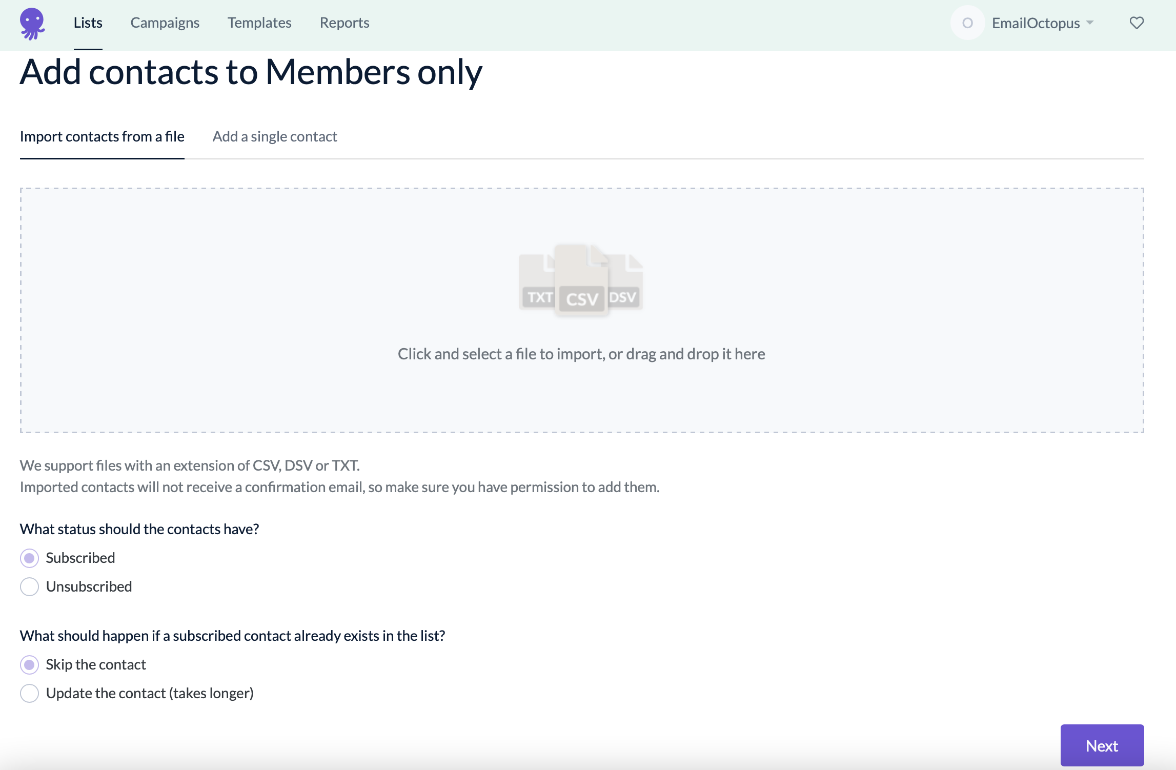 importing contacts into a list emailoctopus knowledge base