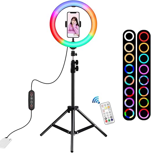 tik tok anneau lumineux led multicolore de 33 cm pour photographie eclairage avec trepied pour smartphone youtube maquillage studio cercle multicolore lampe de photographie et video amazon fr high tech