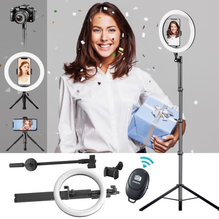 selfie ring light 10 led lumiere anneau lampe avec trepied et telecommande bluetooth pour youtube tiktok self portrait video tour cdiscount appareil photo